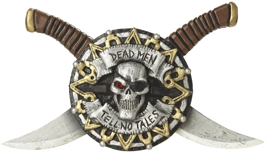 Finish off your seafaring look with the Pirate Dagger Adult Belt! Daggers criss-cross behind the intimidating skull buckle that warns: “Dead Men Tell No Tales”.